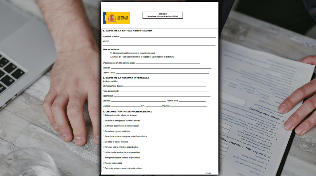 En el marco del nuevo proceso de Regularización 2026, el Informe de Vulnerabilidad (Anexo II) se ha consolidado como un documento determinante para acreditar la… Lee más: El Informe de Vulnerabilidad (Anexo II): Requisitos y Procedimiento Oficial - Guía Técnica: El Informe de Vulnerabilidad (Anexo II) y Modelos EX-31 y EX-32, para la Regularización 2026